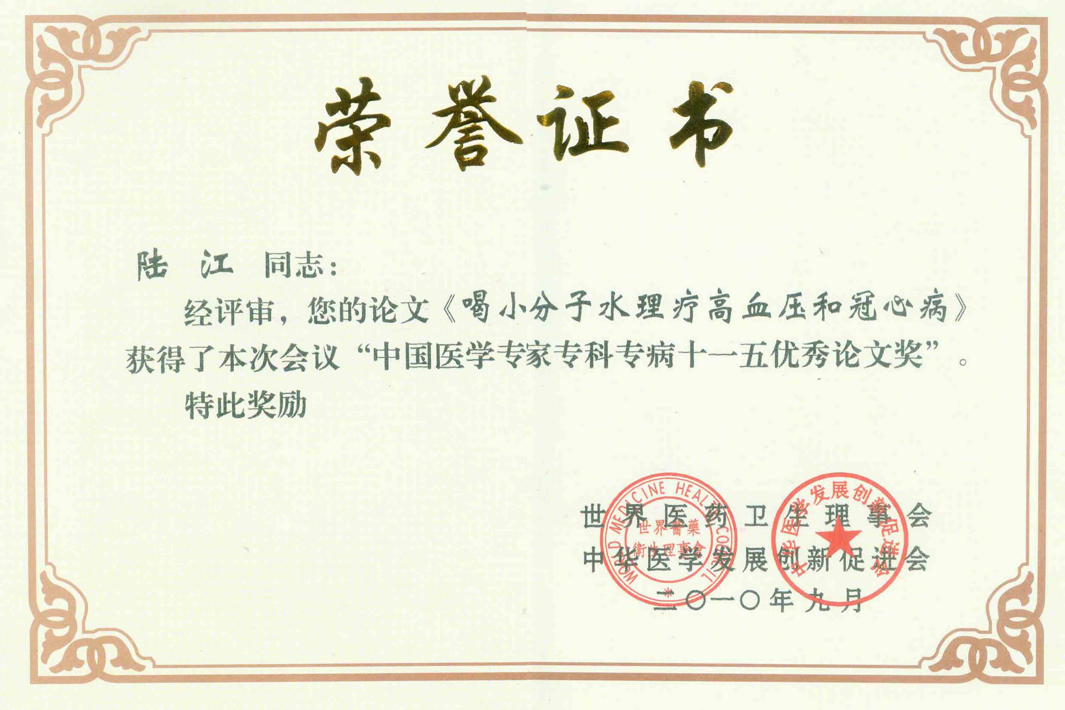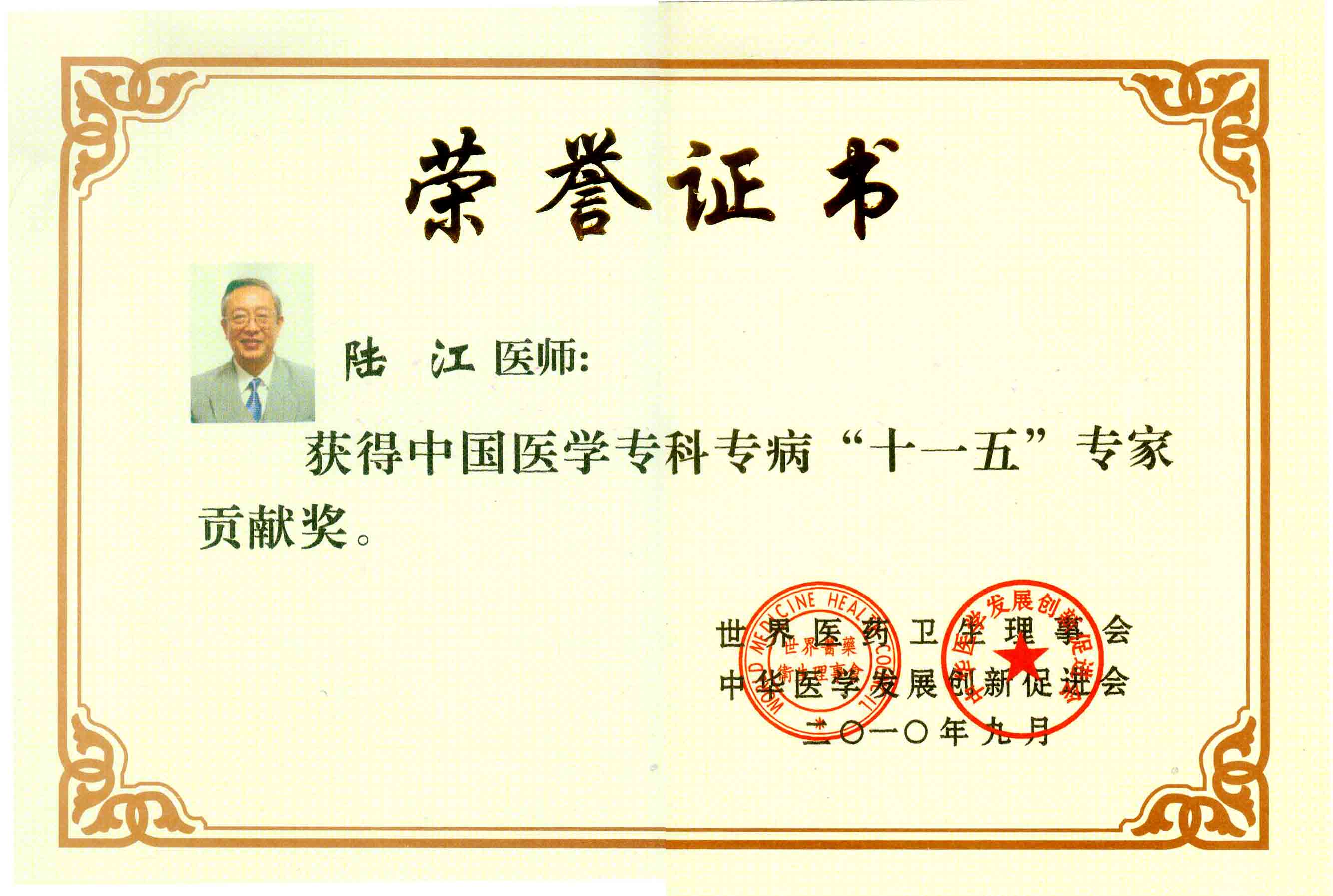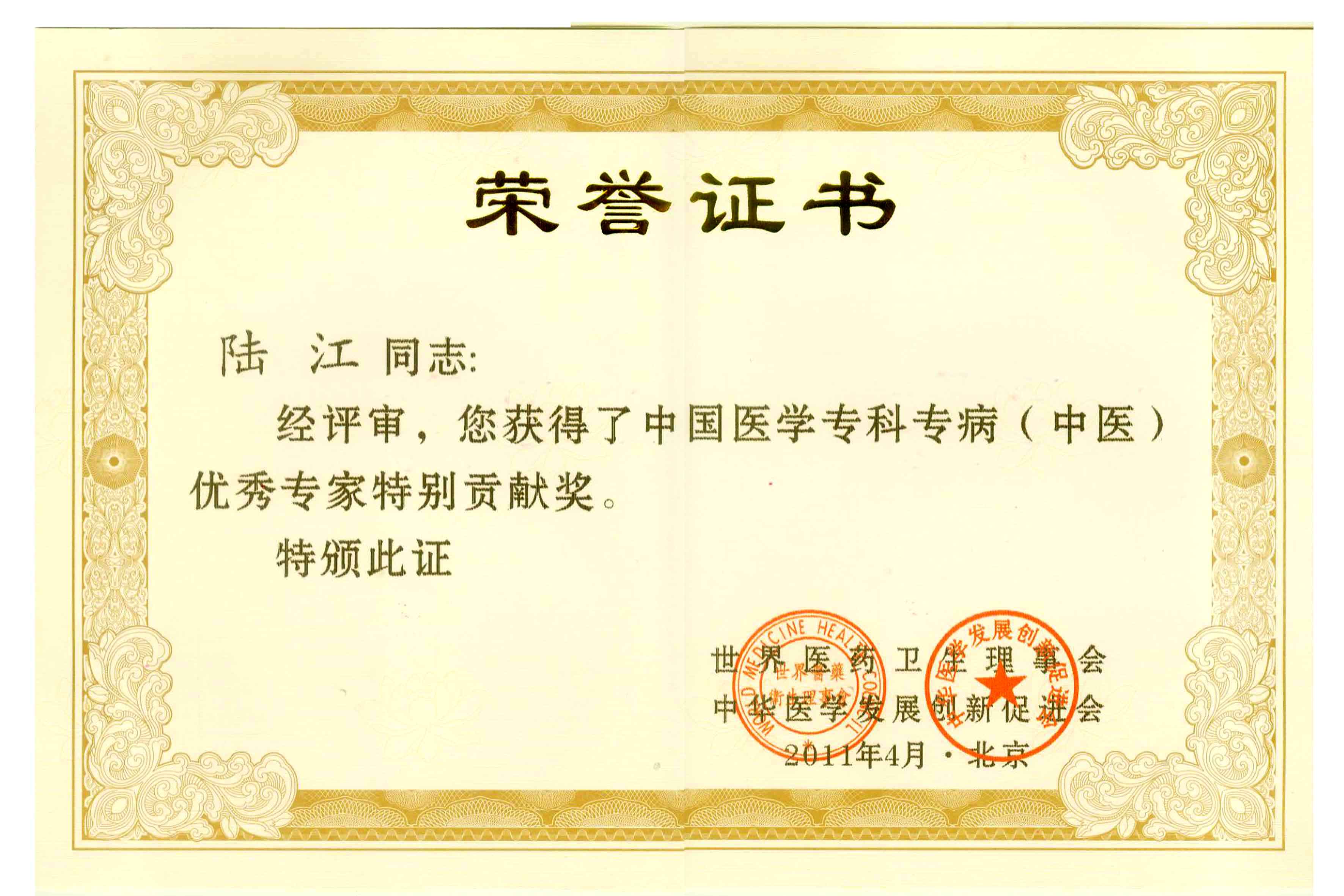 陸江獲得中國(guó)醫(yī)學(xué)專(zhuān)科專(zhuān)病優(yōu)秀專(zhuān)家恃別貢獻(xiàn)獎(jiǎng)