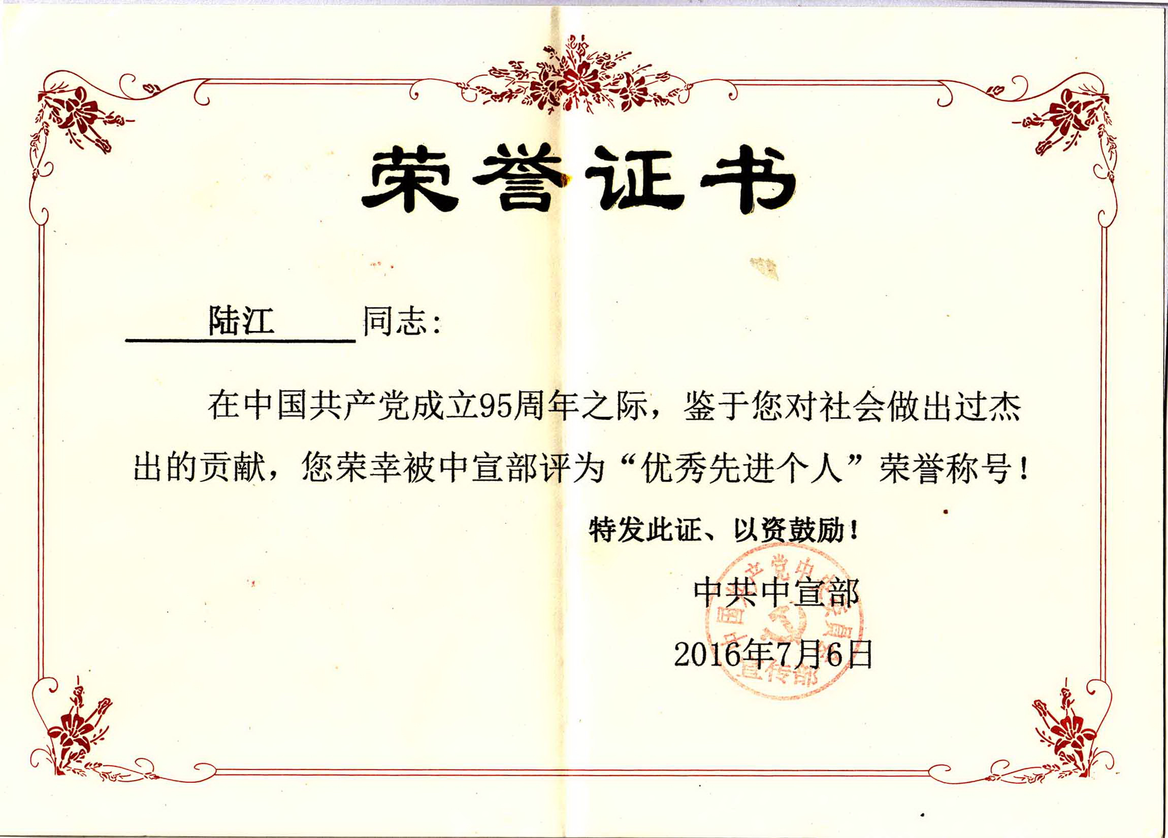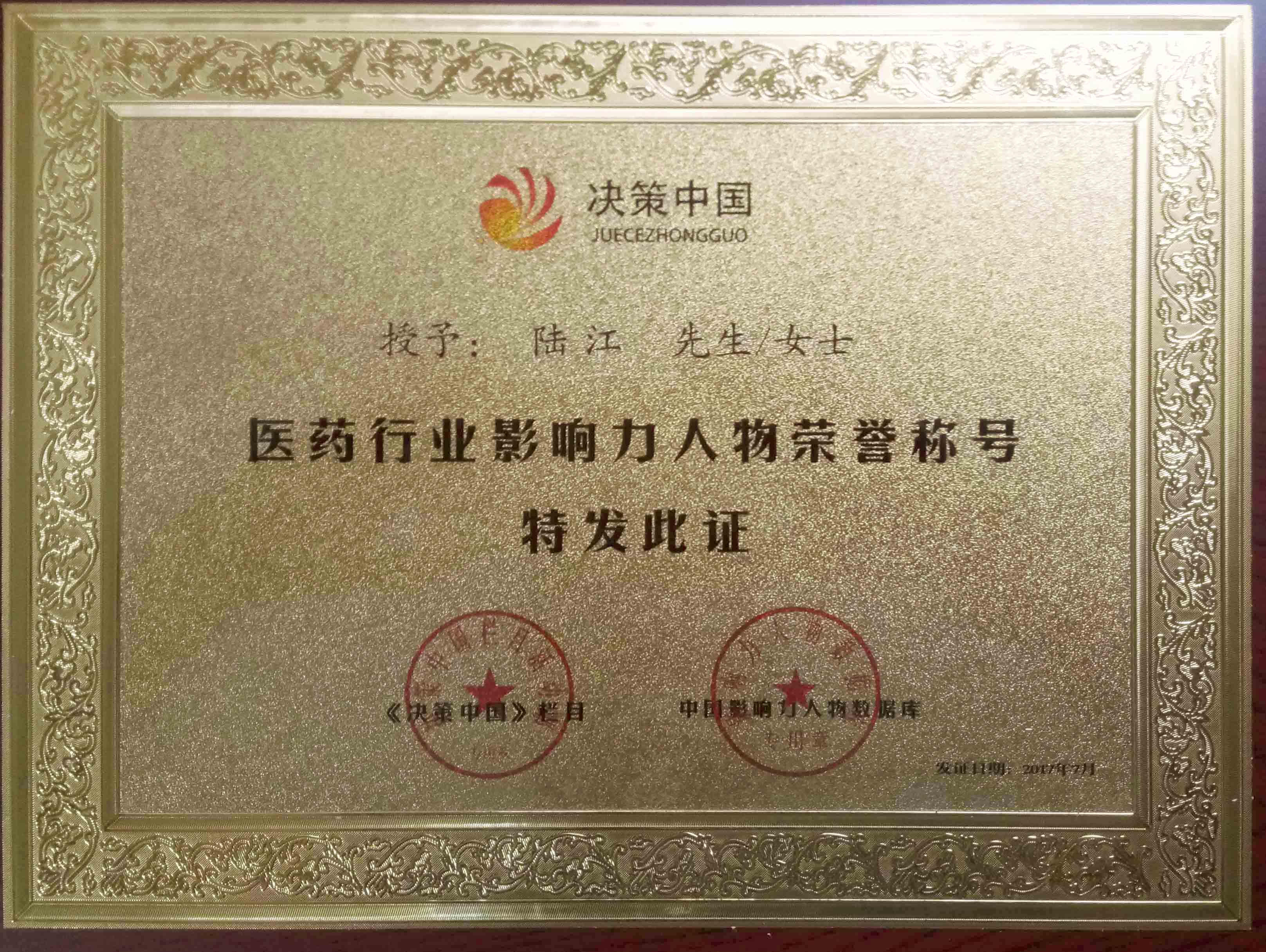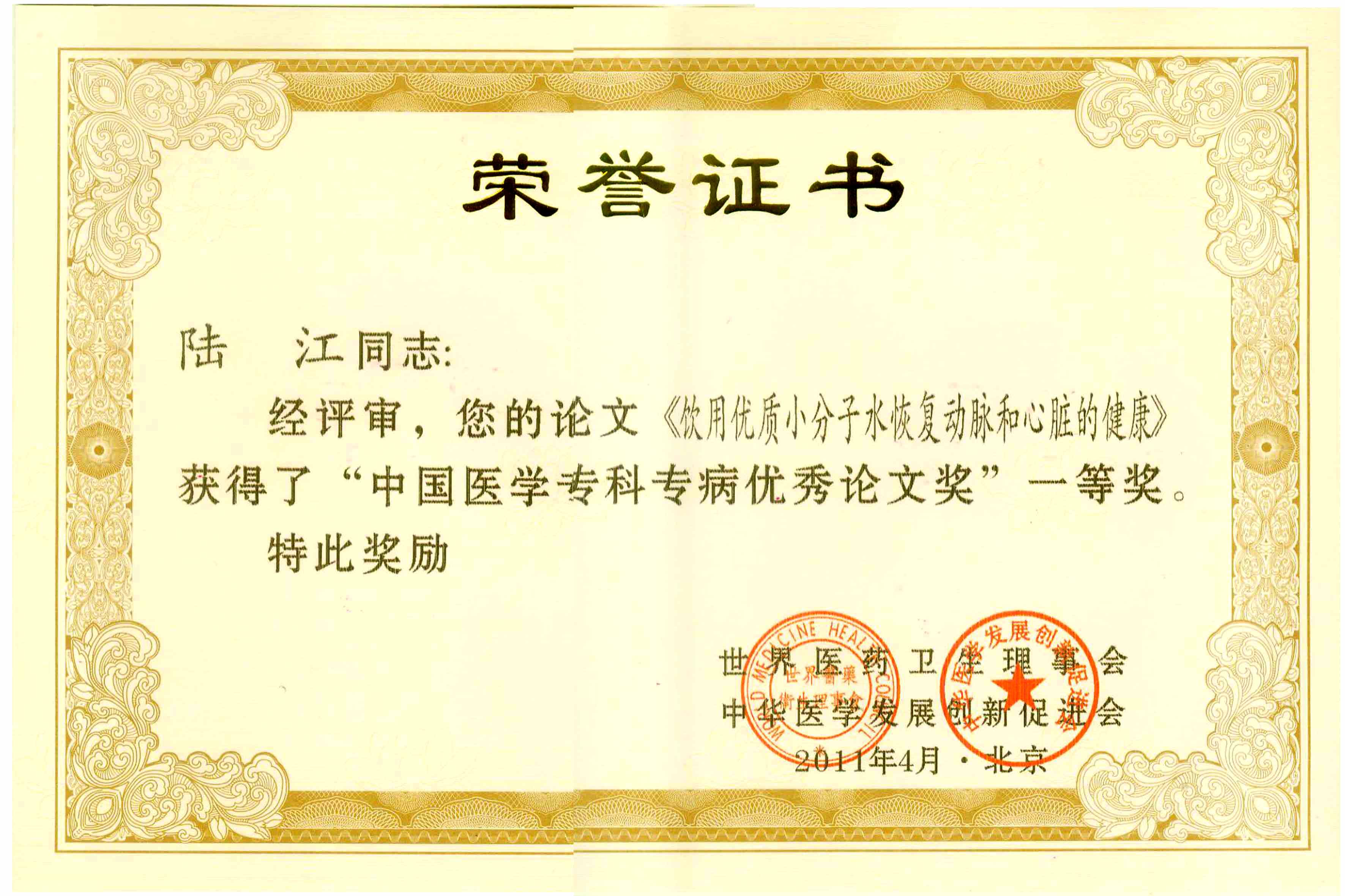 陸江獲得中國(guó)醫(yī)學(xué)專(zhuān)科專(zhuān)病優(yōu)秀專(zhuān)家恃別貢獻(xiàn)獎(jiǎng)