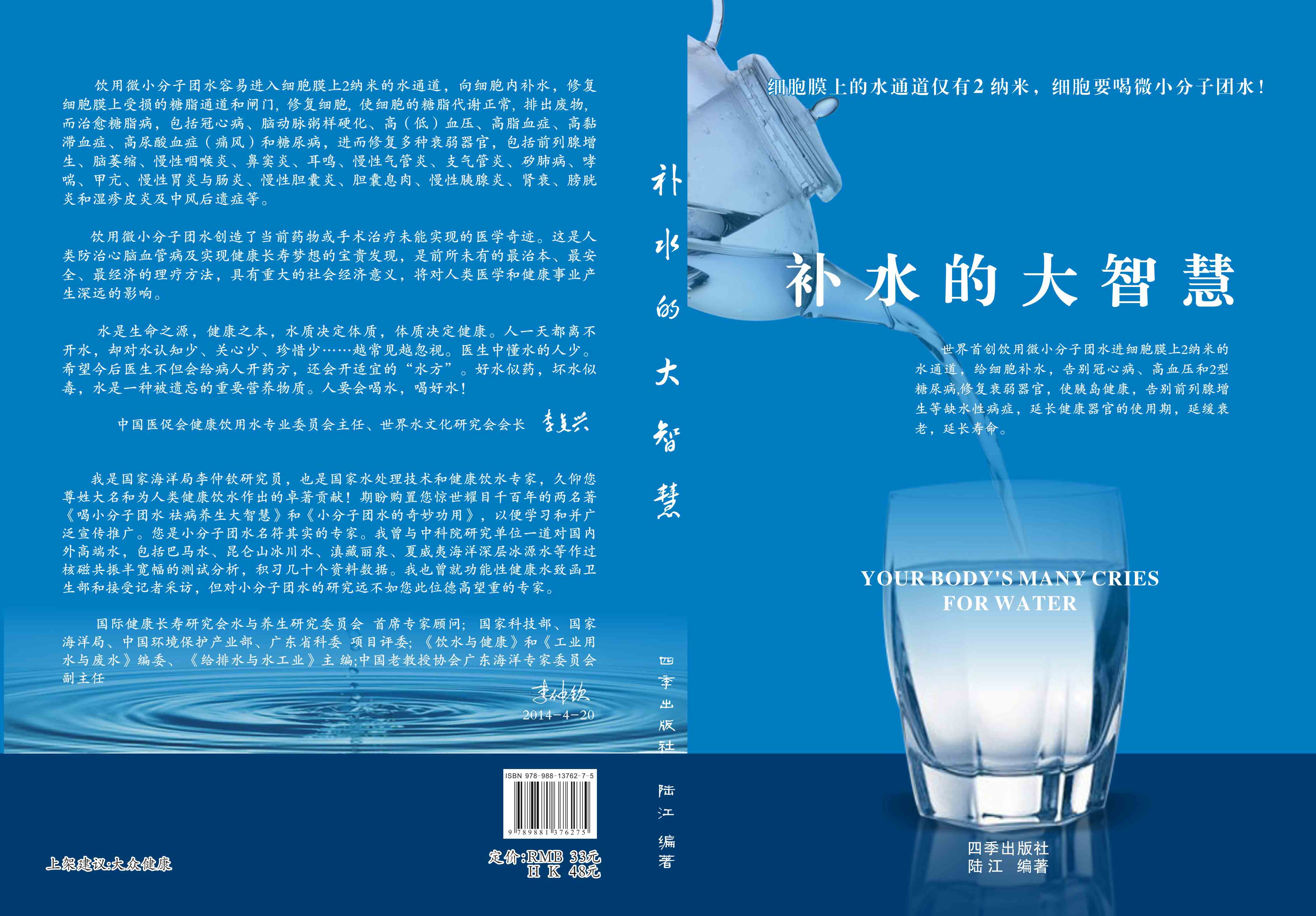 ----幾千年來(lái),人們感到口渴才喝水,誤認(rèn)為口渴是唯一的缺水信號(hào),使喝水量偏少。很多人只知道補(bǔ)血補(bǔ)氣補(bǔ)腎補(bǔ)鈣補(bǔ)硒,而不知補(bǔ)水,逐漸使許多器官缺水,包括皮膚、動(dòng)脈、氣管、膽囊、腸胃、骨關(guān)節(jié)、腎臟、前列腺和胰島缺水,以致患冠心病、高(低)血壓和糖尿病等缺水性病癥。美國(guó)F·巴特曼醫(yī)學(xué)博士寫(xiě)有《水是最好的藥》一書(shū)很受歡迎,我國(guó)2007年譯成中文版,論述人體缺水引起許多病癥,他指導(dǎo)3000多患者喝水治愈了哮喘、胃炎和高血壓等病癥。而我是從2000年起,讓患者飲用微小分子團(tuán)水,因?yàn)槿菀走M(jìn)細(xì)胞膜上2納米的水通道,治愈了許多缺水性的病。我跟蹤調(diào)查14年,發(fā)現(xiàn)凡是認(rèn)真飲用和合理膳食,可治愈冠心病、高(低)血壓和2型糖尿病與衰弱器官并發(fā)癥及中風(fēng)后遺癥。高血壓患者飲用2~5個(gè)月,癥狀消除,不再服藥,逐漸逆轉(zhuǎn)至消除動(dòng)脈粥樣硬化,血壓正常穩(wěn)定,治愈了高血壓;冠心病人飲用3~5個(gè)月,消除心絞痛、房顫等癥狀,不再服藥,一年左右心電圖正常,經(jīng)冠狀動(dòng)脈造影掃描表明冠脈內(nèi)無(wú)粥樣斑塊,真正治愈了冠心??;2型糖尿病人飲用3~10個(gè)月停藥,血糖尿糖正常,糖尿病痊愈。并且使前列腺增生、慢性咽喉炎、鼻竇炎、耳鳴、慢性氣管炎、支氣管炎、哮喘、矽肺病、慢性胃腸炎、膽囊炎、胰腺炎、腎衰、膀胱炎、風(fēng)濕性關(guān)節(jié)炎、便秘、痔瘡和濕疹皮炎等不藥而愈,而無(wú)需終生服藥。飲用微小分子團(tuán)水治愈的是長(zhǎng)期吃藥治不好的病,彌補(bǔ)了幾千年來(lái)醫(yī)藥的欠缺,成為人類(lèi)健康的寶貴資源。