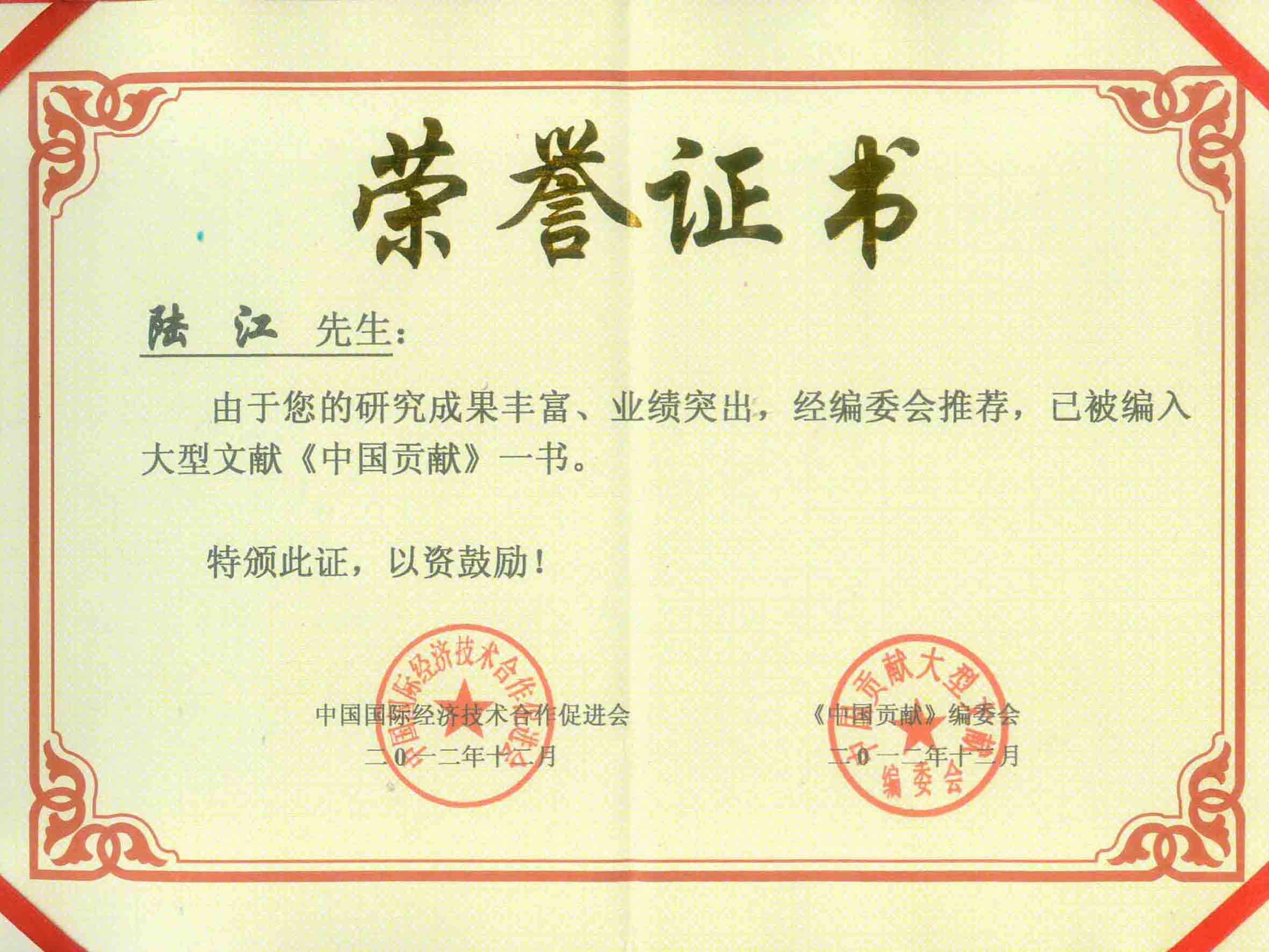陸江的論文獲一等獎(jiǎng)榮譽(yù)證書(shū)-- 陸江論文獲創(chuàng)新論文獎(jiǎng)牌