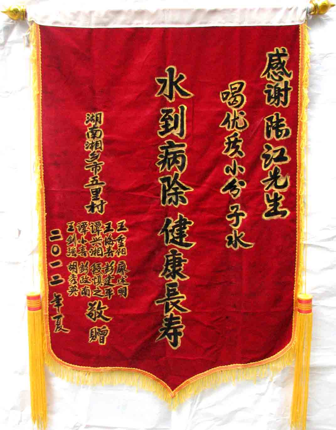 2015年潘志山主動(dòng)寫(xiě)一篇感想《我以親身實(shí)踐打破了冠心病、高血壓、糖尿病需終生服藥的神話(huà)》說(shuō):“堅(jiān)持按發(fā)明人陸?江先生倡導(dǎo)的用‘已饑方食’的方法合理膳食,我的健康狀況越來(lái)越好:糖尿病造成的視力下降有了明顯的恢復(fù),末梢神經(jīng)炎導(dǎo)致的指端潰爛現(xiàn)在完全痊愈,痔瘡自從飲用微小分子團(tuán)水半年后就再也沒(méi)有復(fù)發(fā)過(guò),氣滯血瘀造成的嘴唇暗紫也漸漸變得紅潤(rùn),舌下靜脈黑紫消失,足背的動(dòng)脈由以前的隱約感到跳動(dòng)現(xiàn)在變得清晰有力。”[13]潘先生披露的訣竅,一是飲用微小分子團(tuán)水給脫水細(xì)胞補(bǔ)水,二是“已饑方食”養(yǎng)生智慧,患者都能做到。